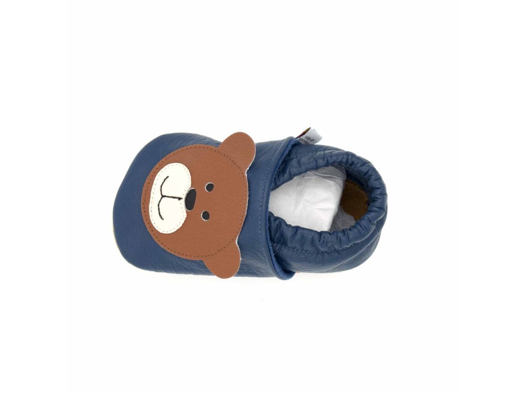 Afelo dětské kožené barefoot capáčky – Medvídek modrý