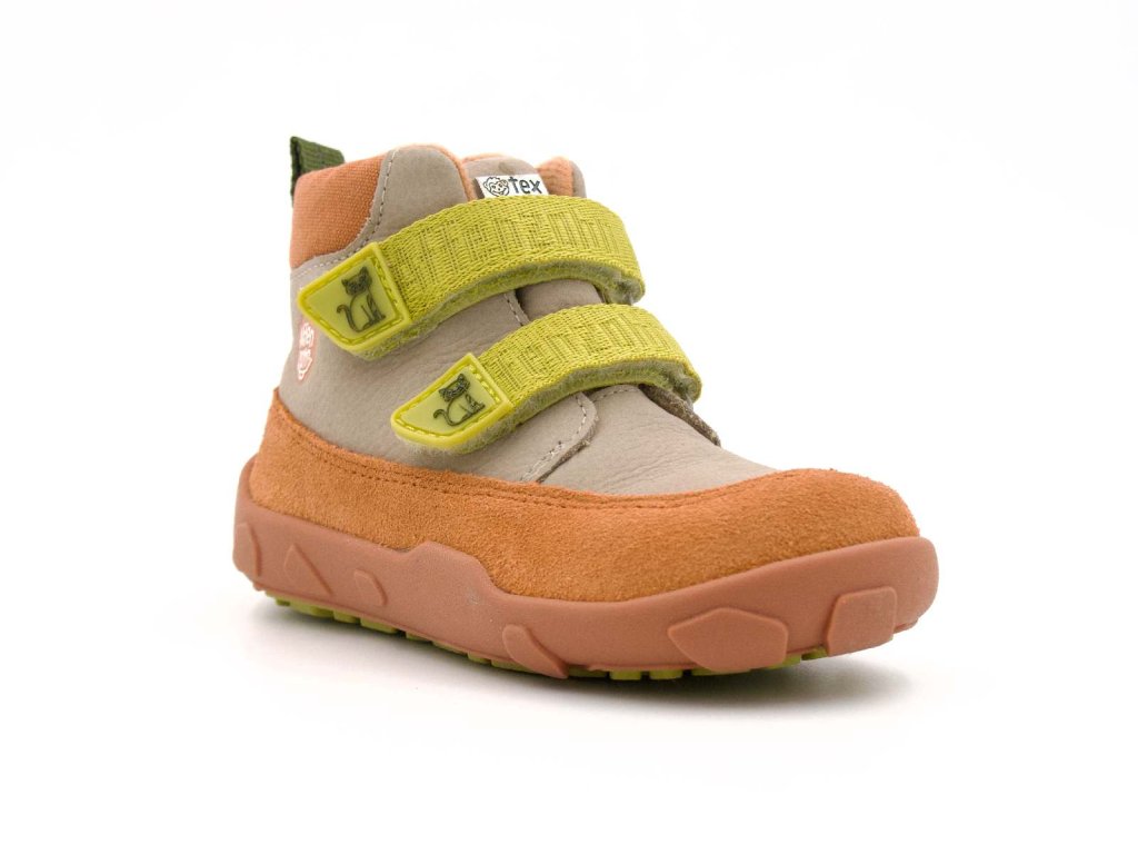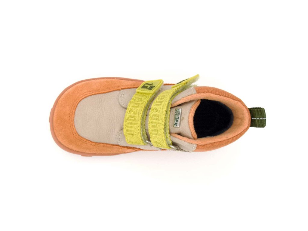 Dětské kotníkové barefoot boty, které si děti zamilují nejen pro své vlastnosti, ale také krásný barevný vzhled. Hladká kůže je doplněná okopem z broušené kůže, který chrání špičku před rychlým opotřebením. Díky membráně zůstávají nožky v suchu i při dešti a lehká fleecová podšívka poskytuje dostatek tepla pro chladnější dny.