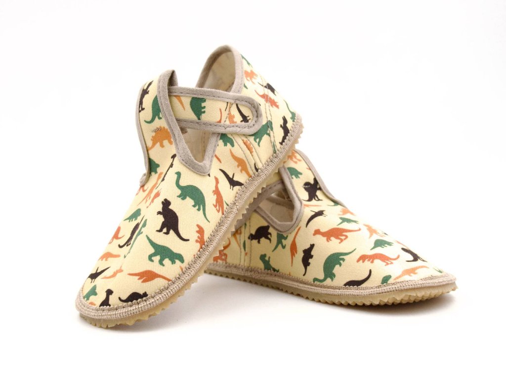 Beda Barefoot přezůvky BFN Playful užší pata/kotník – Dinosaurus