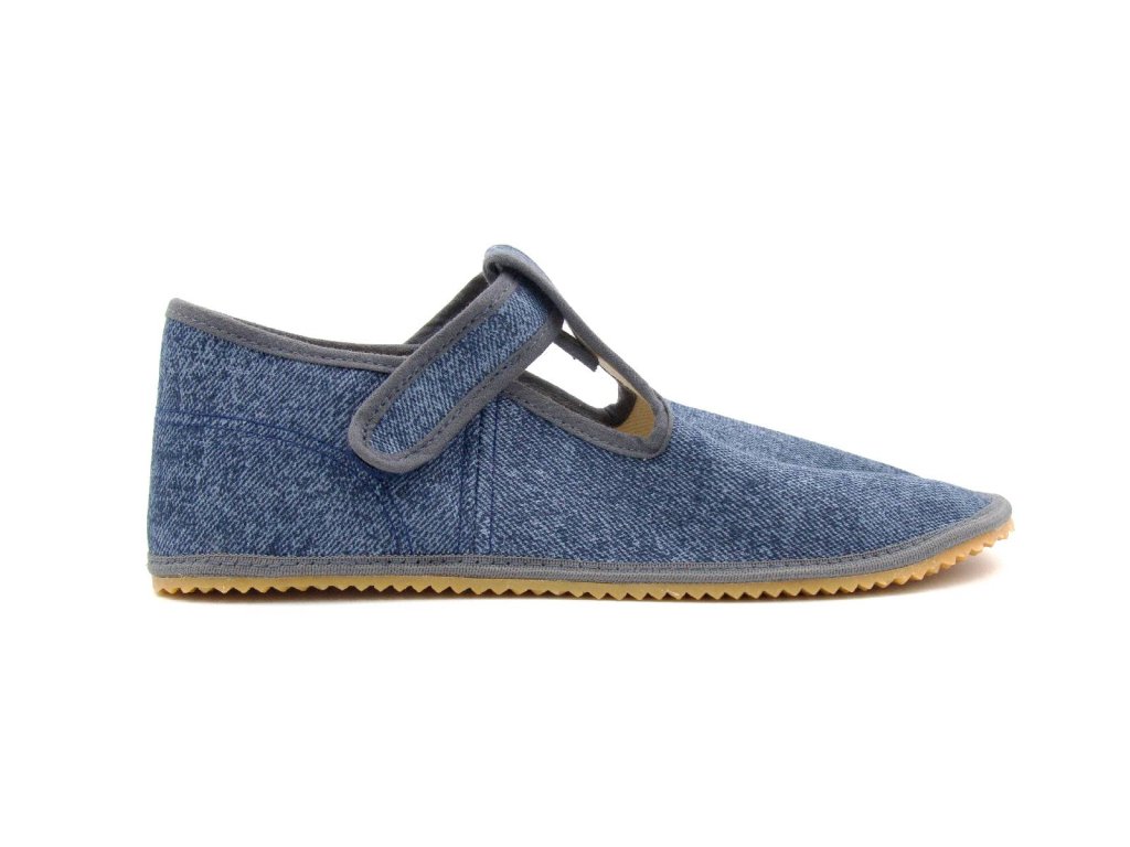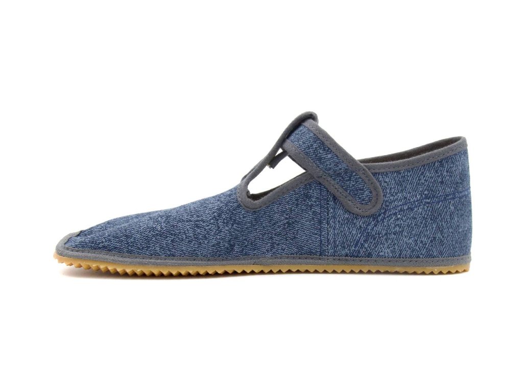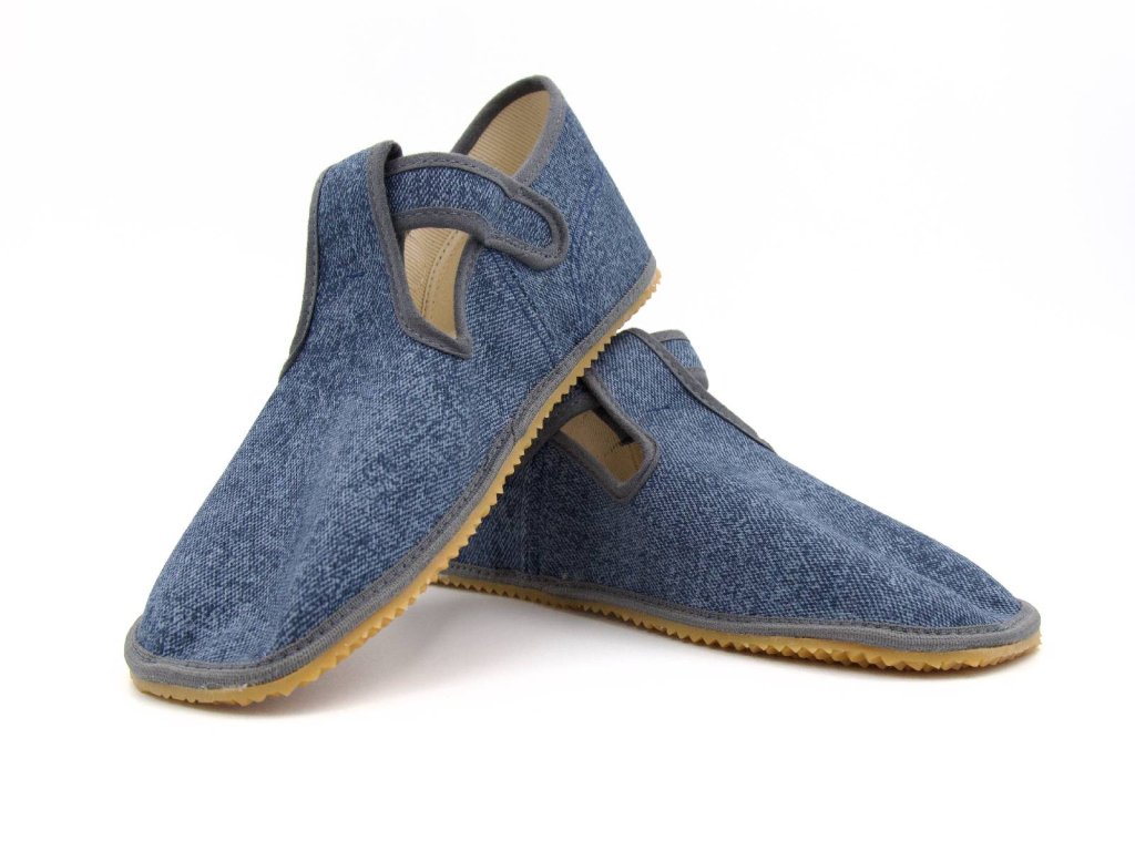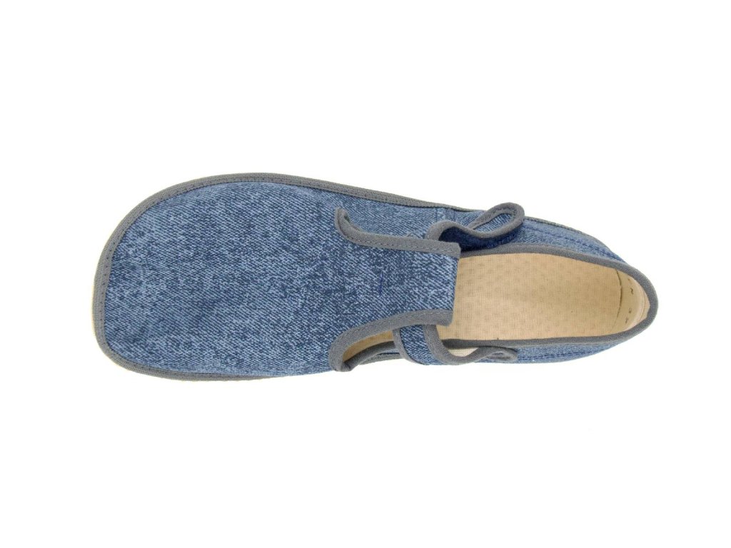 Beda Barefoot přezůvky BFN Playful užší pata/kotník – Grey Denim