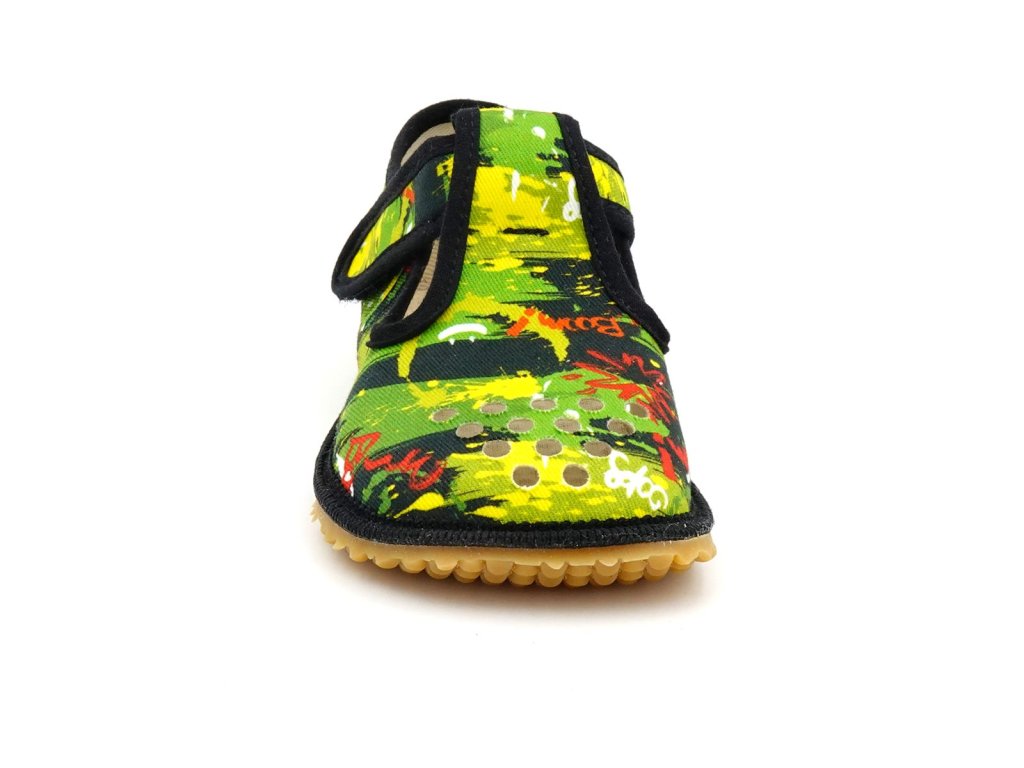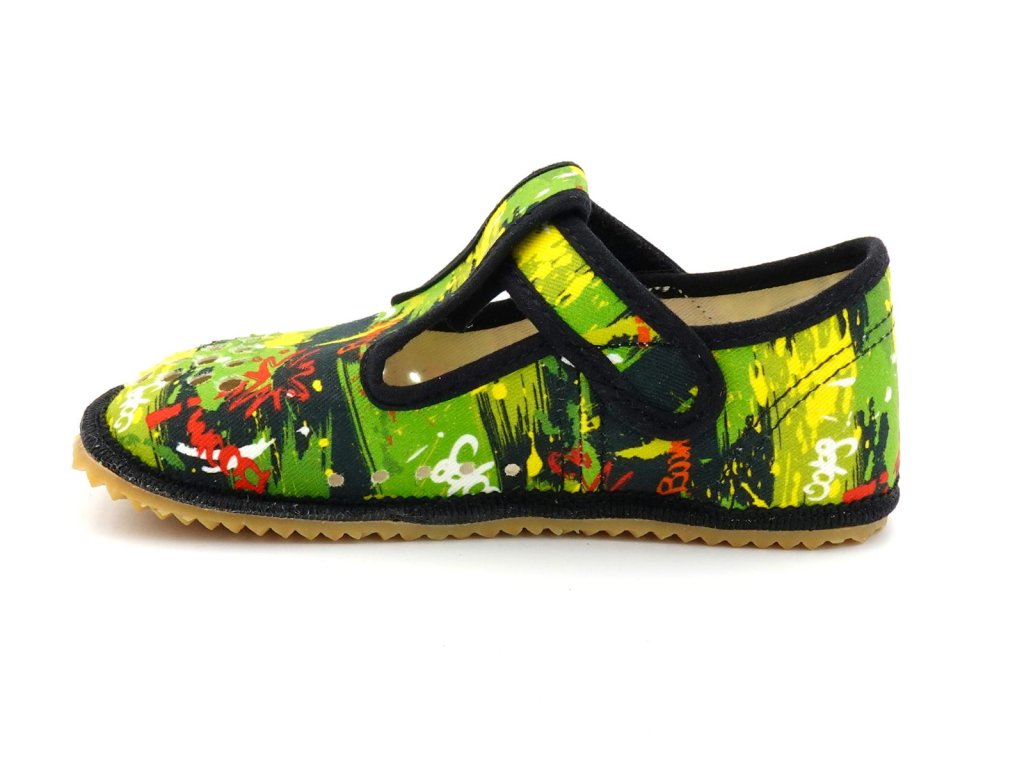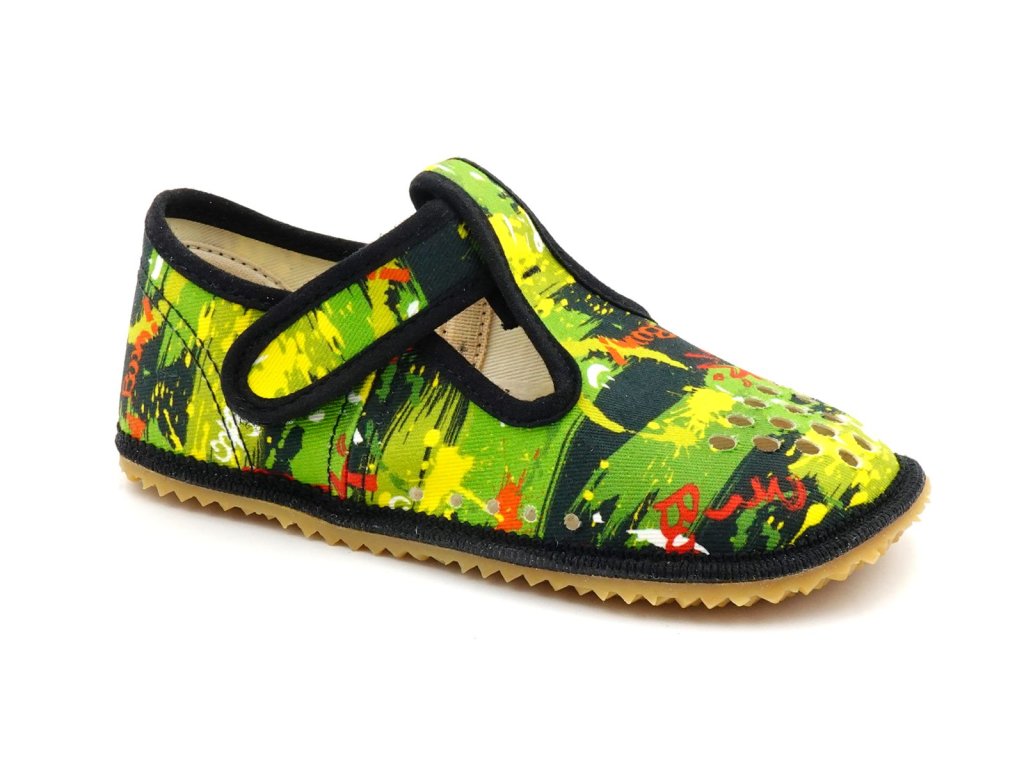 Dětské textilní barefoot papučky české značky Beda. Jsou lehké a vzdušné, ideální na každodenní nošení do školky, školy, do herničky nebo jen tak na doma. Jejich klasický model pro širší patu a prsty do roviny nebo do vějířku. Ohebná protiskluzová gumová podrážka s nulovým dropem podporuje správné držení těla a přirozený pohyb. Snadno se dotahují pomocí zapínaní na suchý zip.