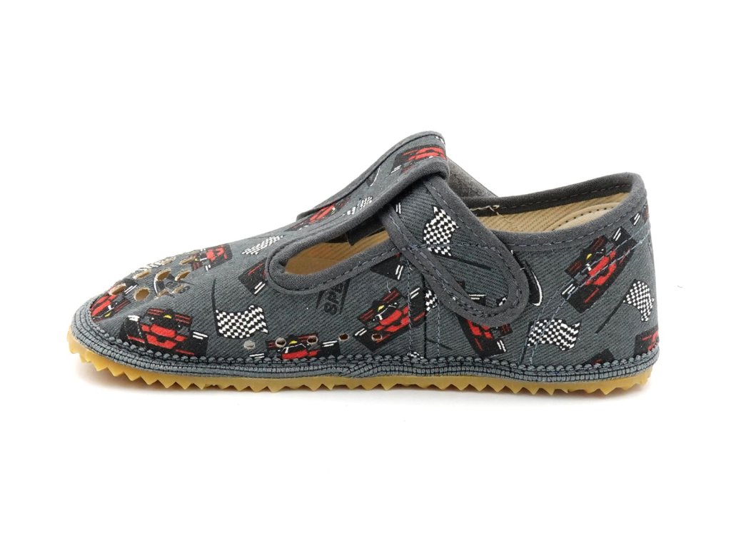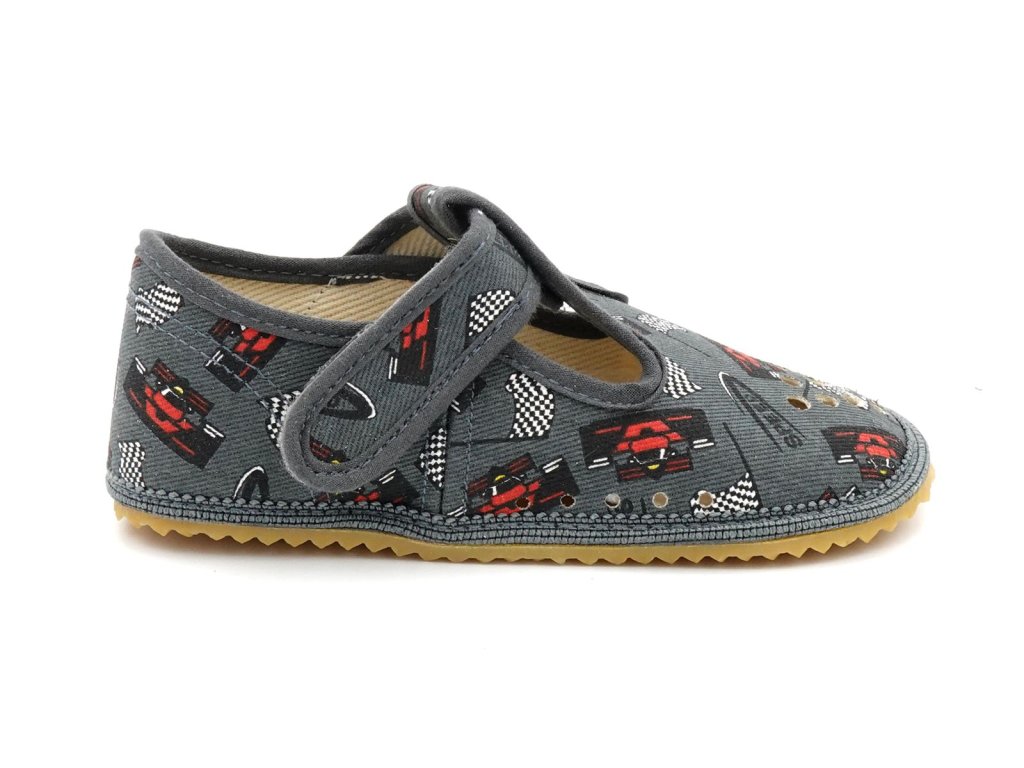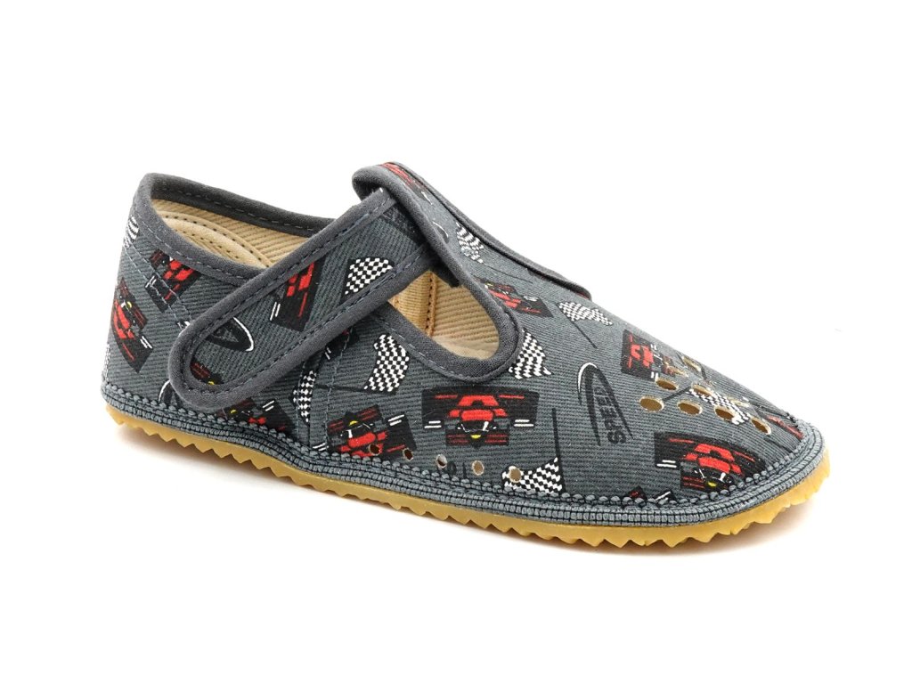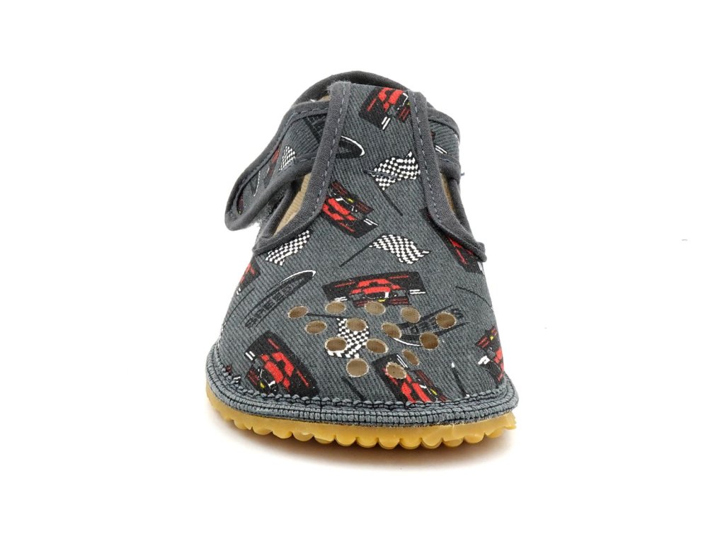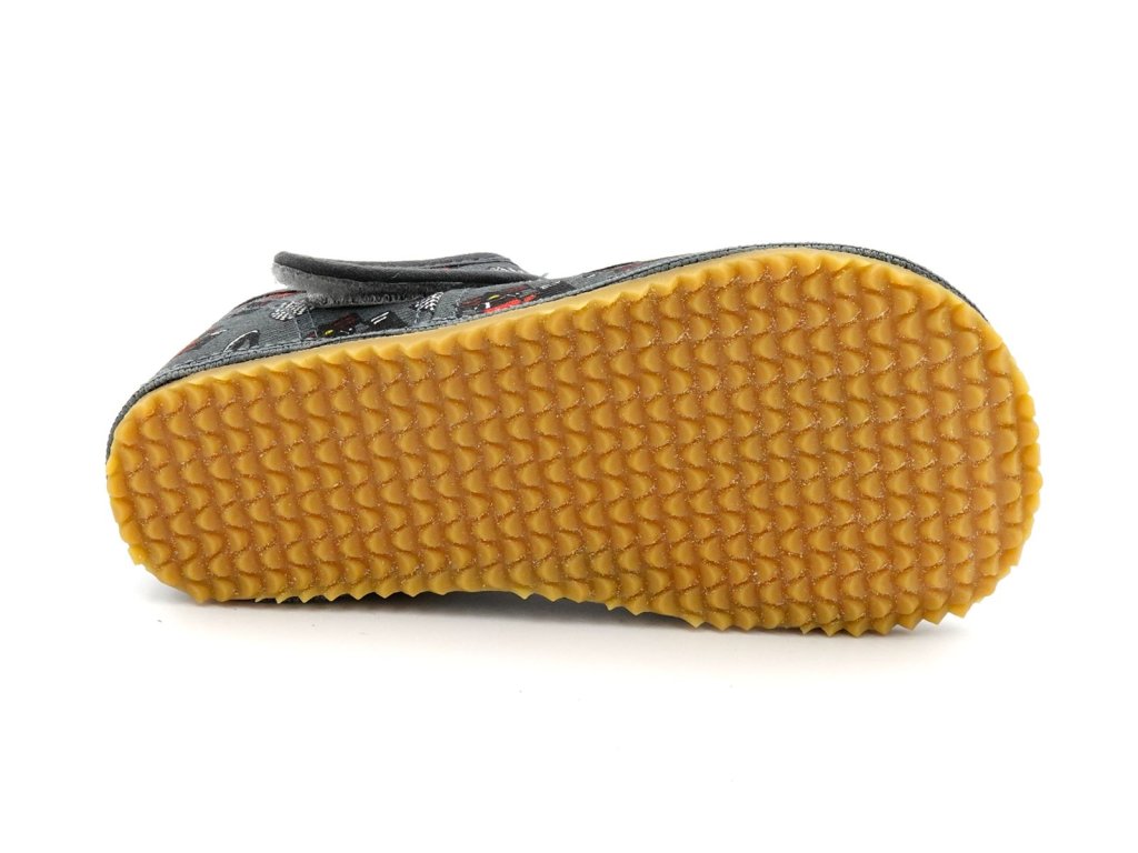 Dětské textilní barefoot papučky české značky Beda. Jsou lehké a vzdušné, ideální na každodenní nošení do školky, školy, do herničky nebo jen tak na doma. Jejich klasický model pro širší patu a prsty do roviny nebo do vějířku. Ohebná protiskluzová gumová podrážka s nulovým dropem podporuje správné držení těla a přirozený pohyb. Snadno se dotahují pomocí zapínaní na suchý zip.