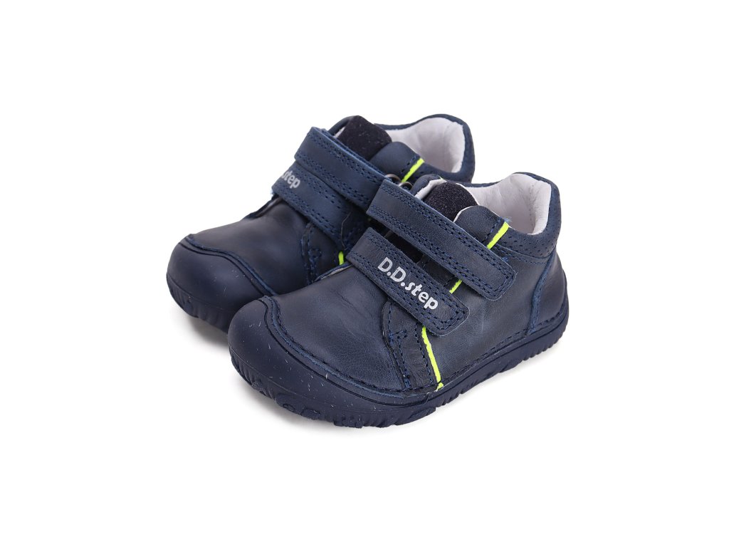 Celokožené barefoot tenisky maďarského výrobce D.D.step. Modelová řada 073 je nejširší z jejich barefoot kolekce, má anatomicky tvarovanou špičku a je vhodná pro nohu s dominantním palcem. Jedná se o celoroční boty, takže je děti vynosí od jara do zimy. Mají velice měkkou gumovou podrážku s nulovým dropem, která podporuje správné držení těla a přirozený pohyb. V přední části je vytažená až nad prsty, díky tomu jsou prsty vašich dětí v bezpečí i v terénu. Děti jistě ocení jednoduchost zapínání na 2 suché zipy.