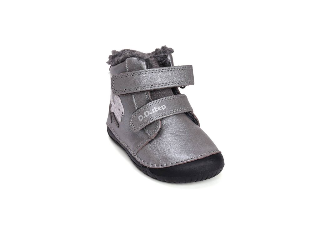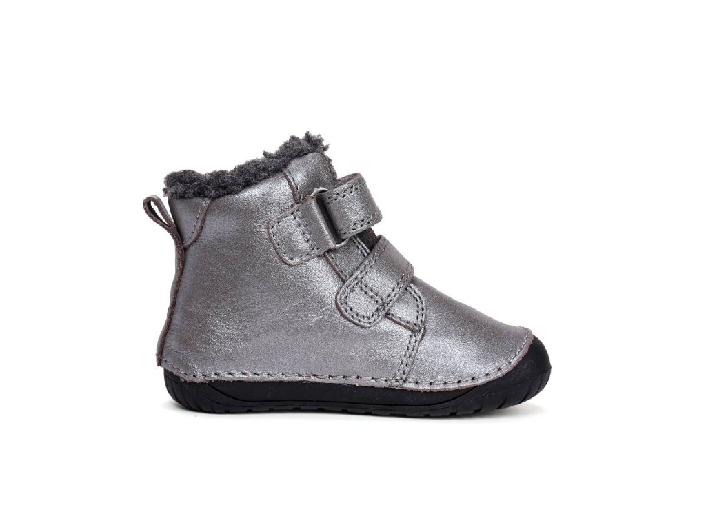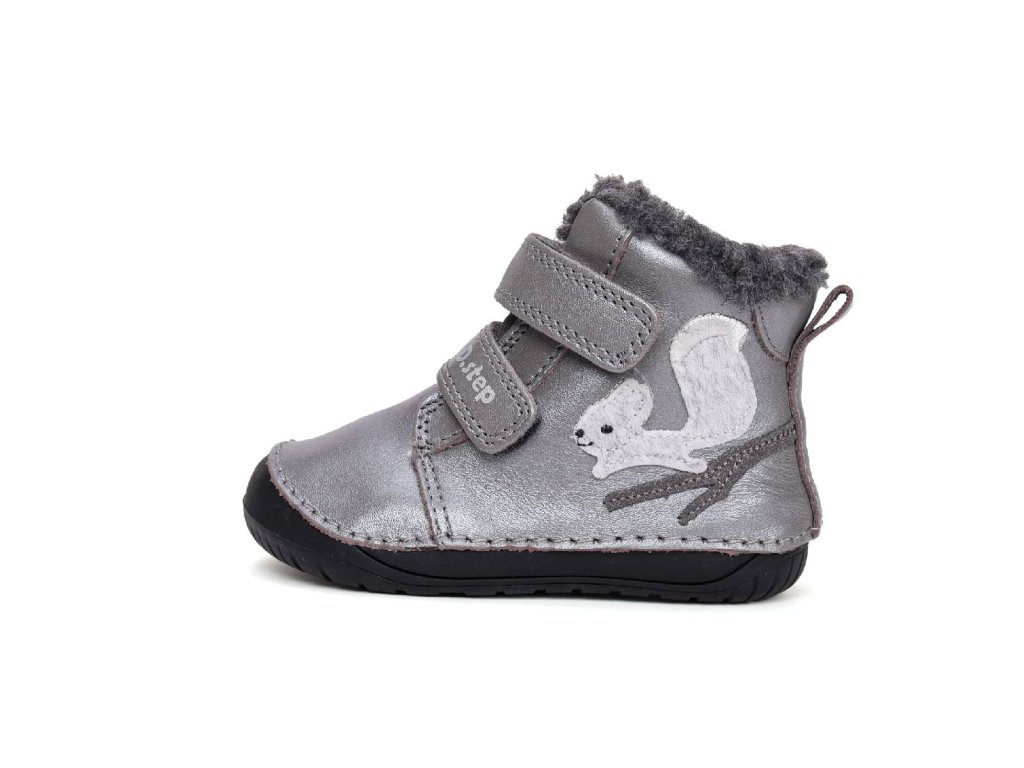 D.D.step dětské zimní barefoot boty W070-52214A šedé třpytivé - veverka