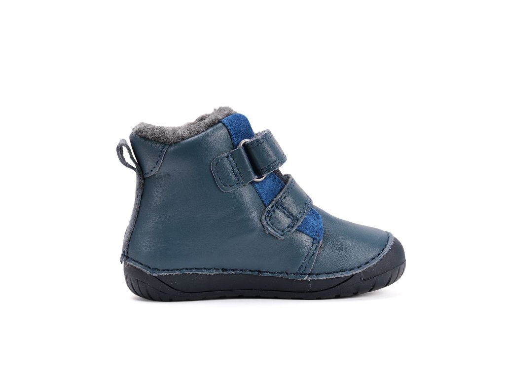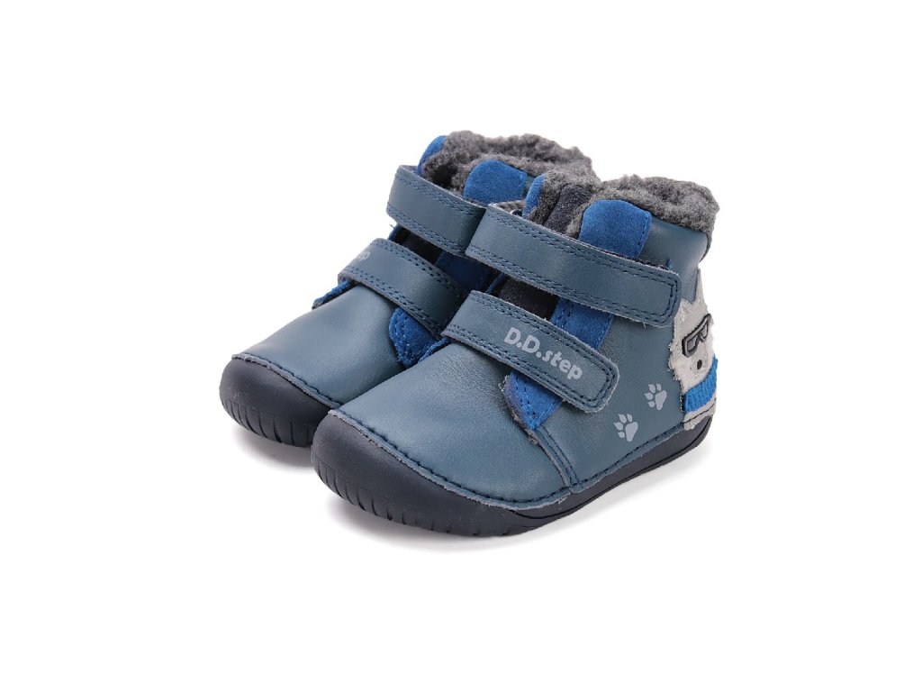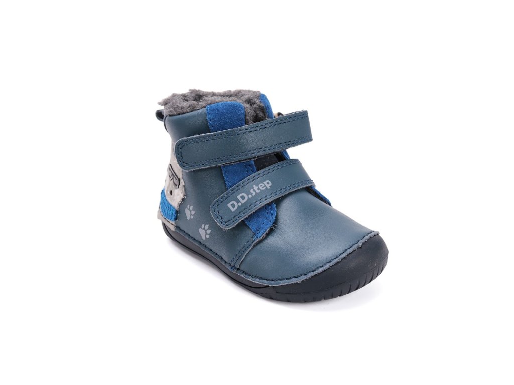 D.D.step dětské zimní barefoot boty W070-52893 modré - liška