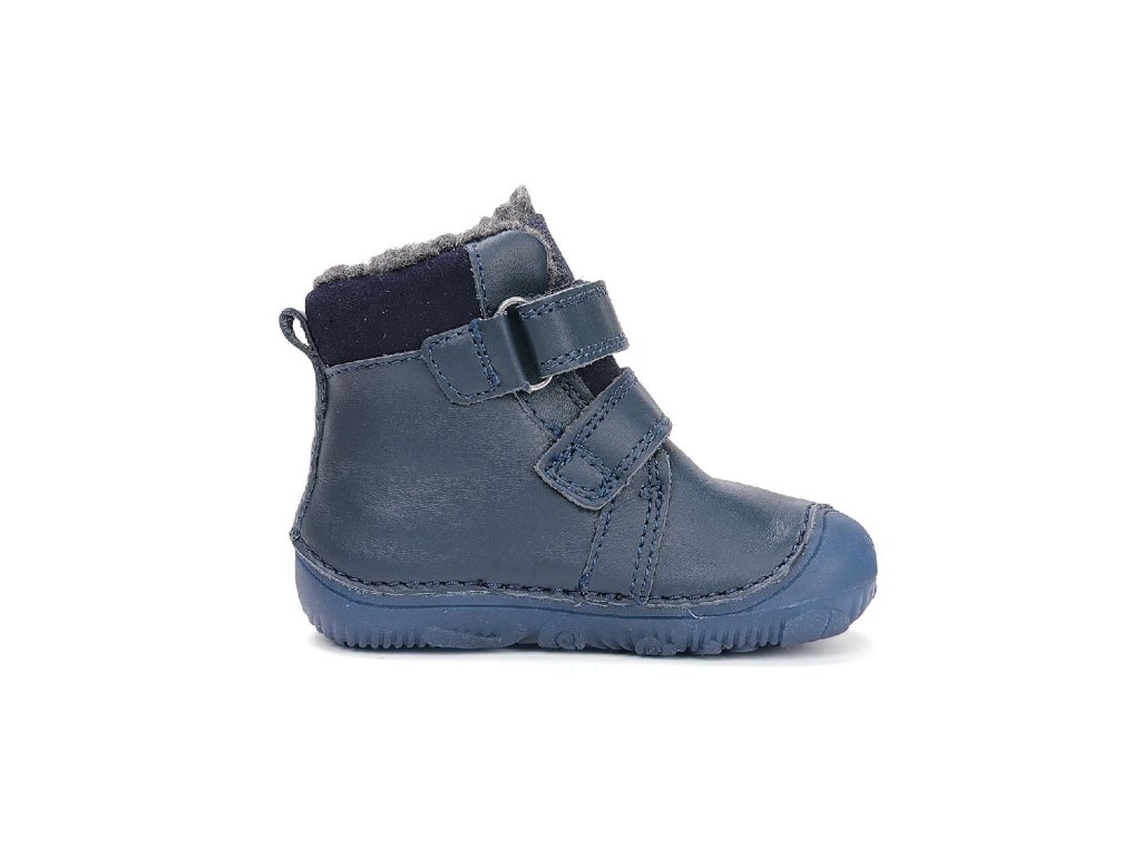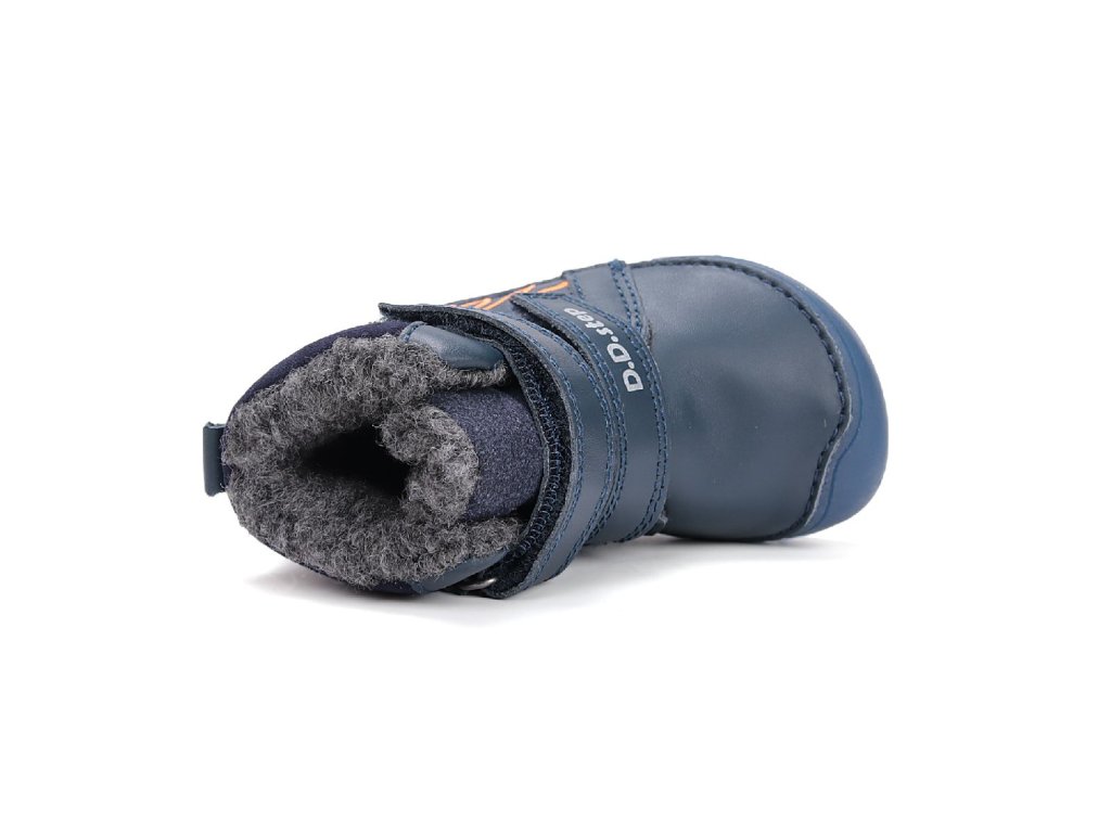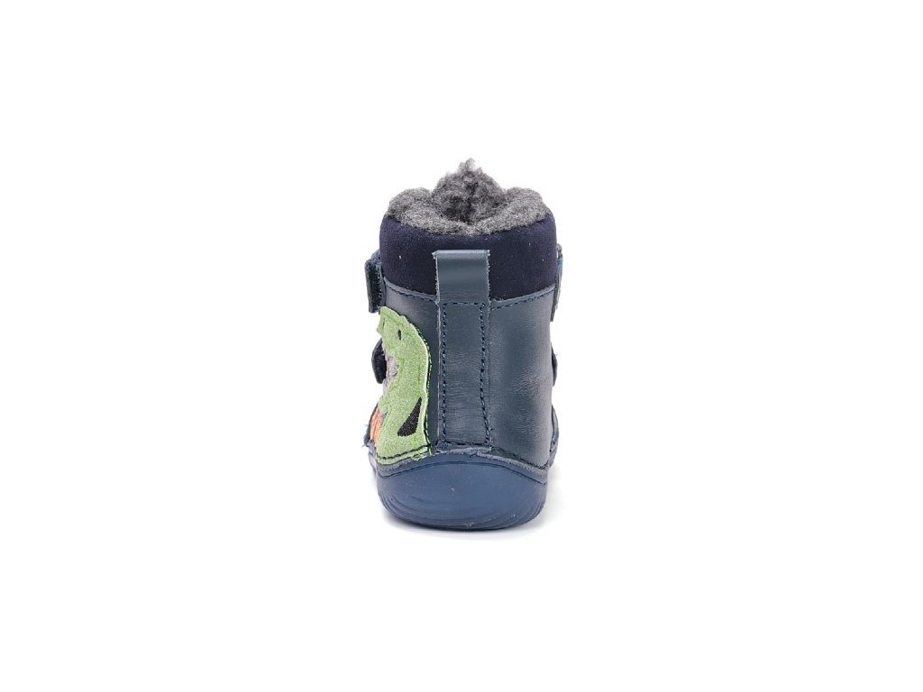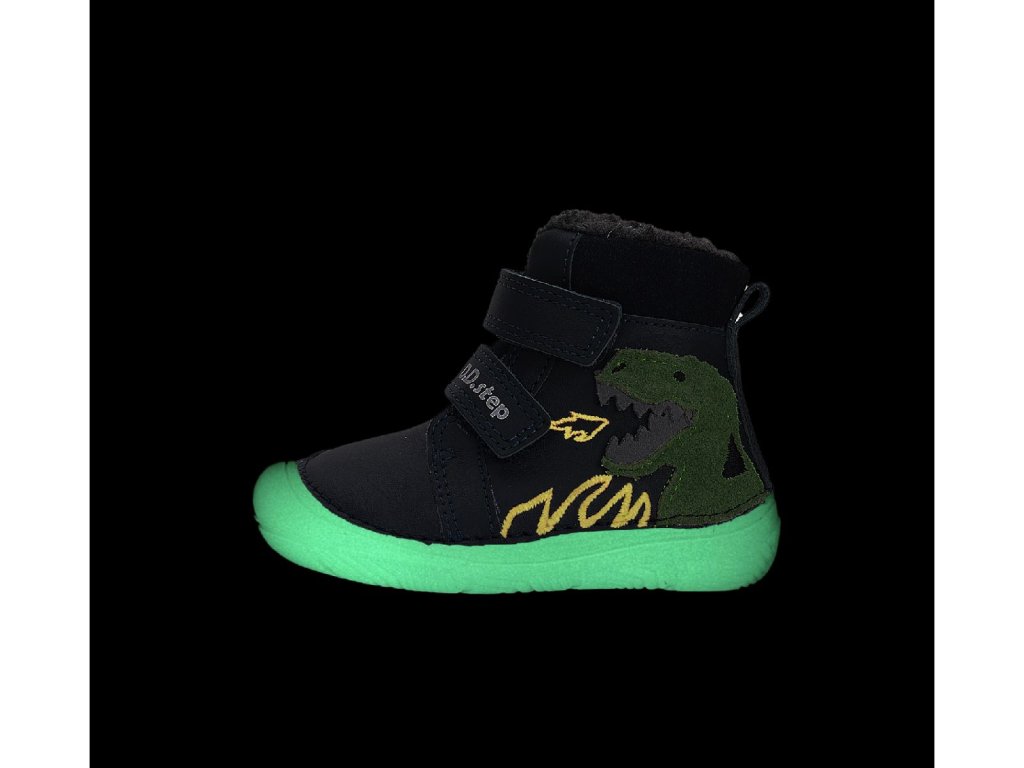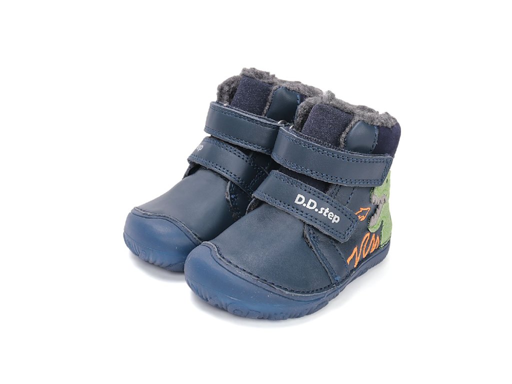 D.D.step dětské zimní barefoot boty W073-52943 modré – dinosaurus