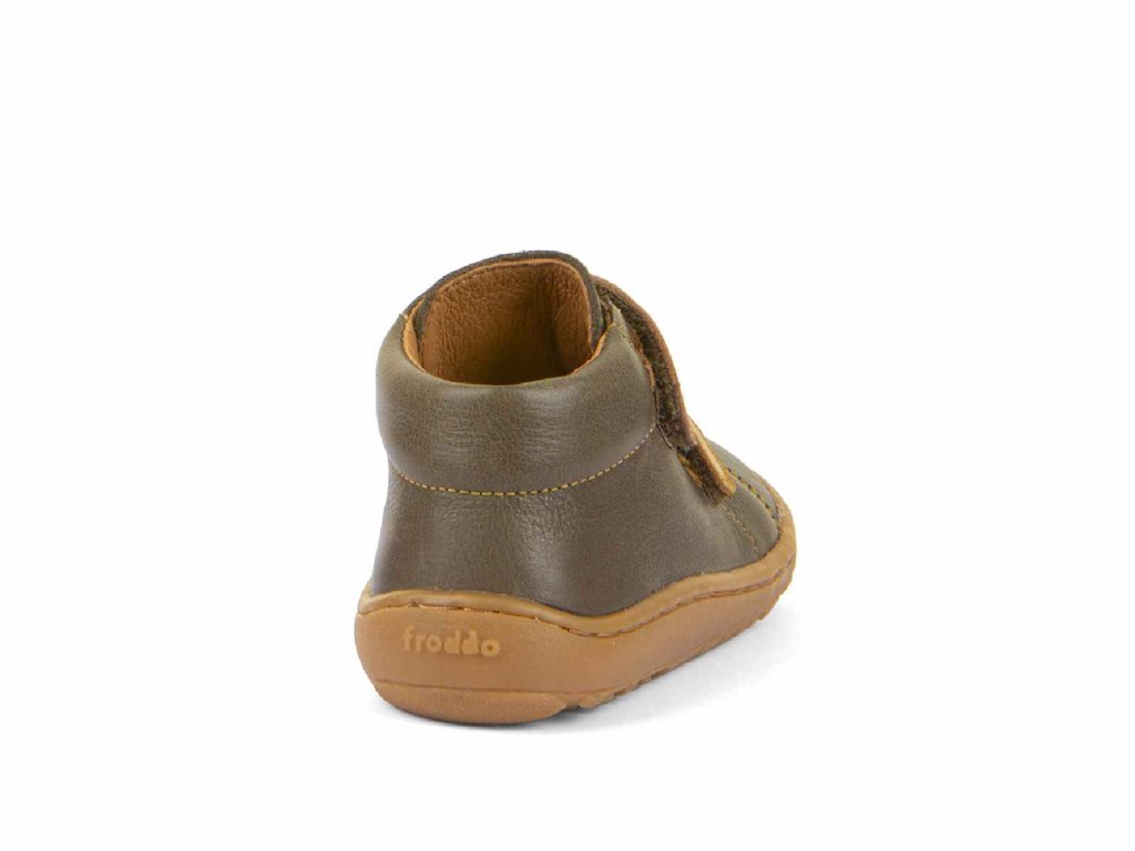 Froddo First Step jsou dětské kožené barefoot tenisky s měkkou podrážkou, aby v nich mohli snadno chodit už ti nejmenší. Jsou vyrobeny z vysoce kvalitní vodoodpudivé kůže. Díky tomu a svému vyššímu střihu po kotníky jsou nejen odolné, ale i vhodné na nošení na jaře, na podzim i v případě nepříznivého letního počasí. Ohebná gumová podrážka s nulovým dropem podporuje správné držení těla a přirozený pohyb. Navíc podrážka je prošitá a mírně předtažená, což udržuje prsty v bezpečí i v terénu. Děti, ale i rodiče jistě ocení jednoduchost zapínání na 2 suché zipy. Tyto kotníkové celoročky se hodí jak do města, tak i na výlety do přírody.