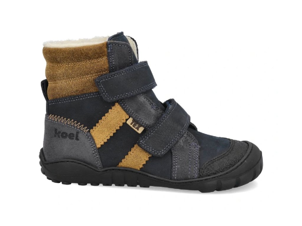 Koel barefoot dětské zimní boty Milo 3.0 Tex Navy/Cognac