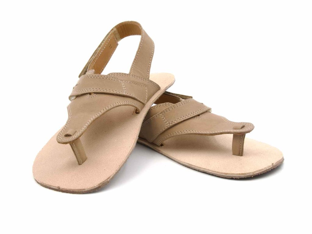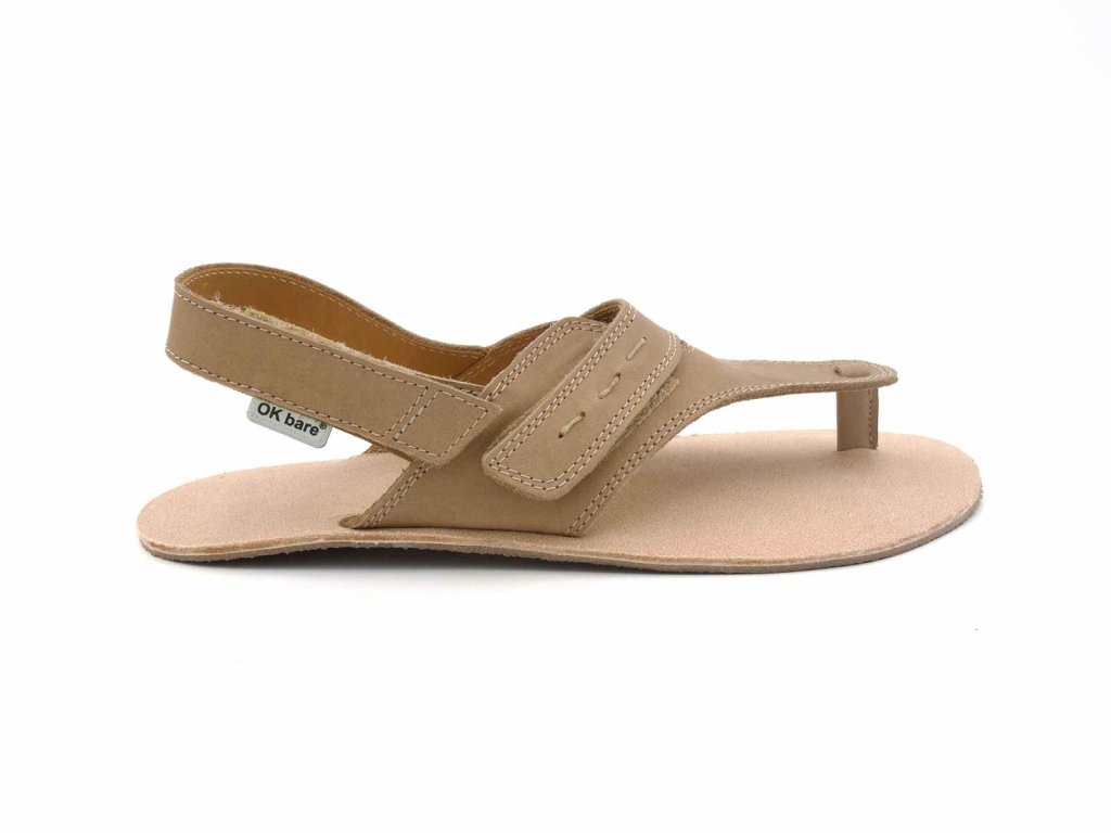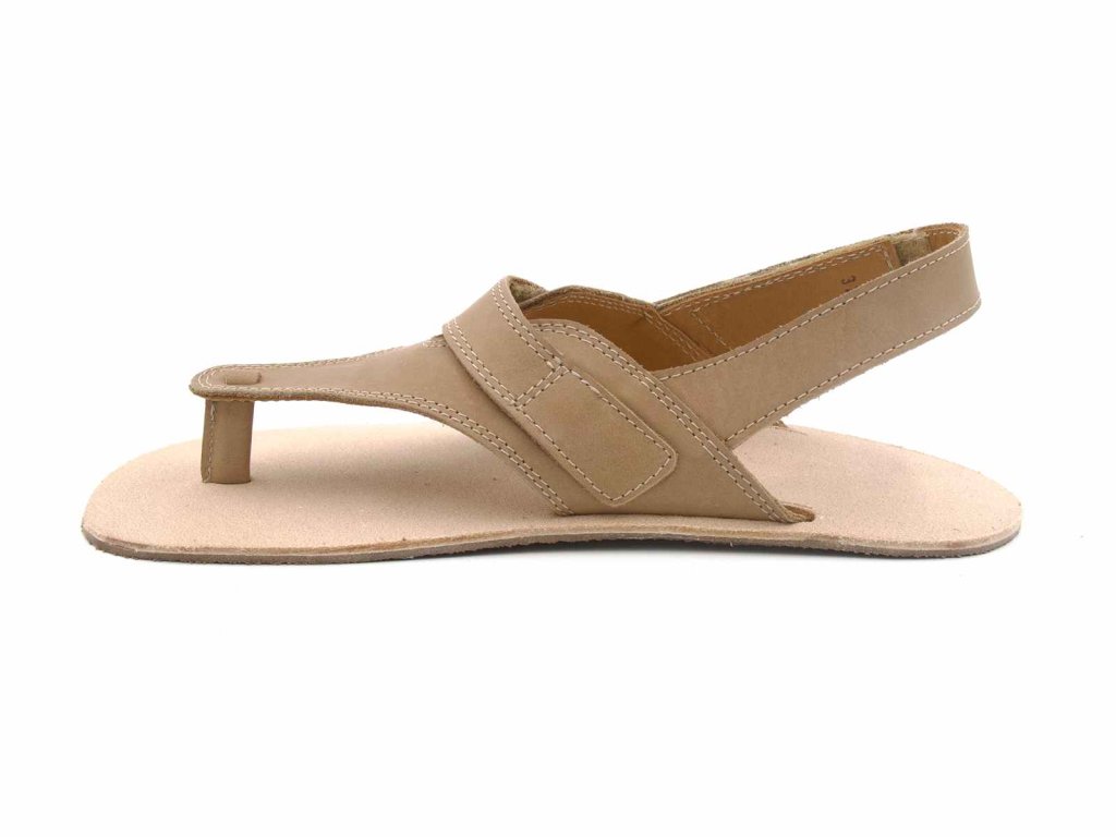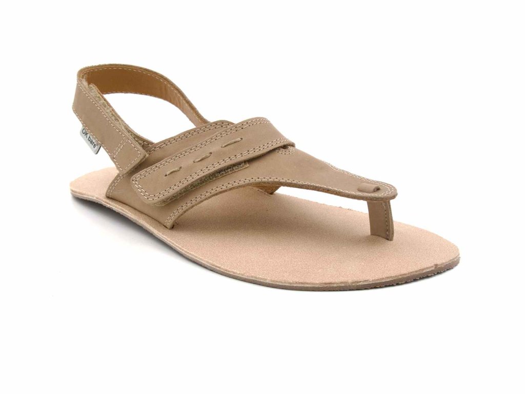 Béžové dámské sandálky OK Bare Fin/I/X jsou minimalistické, lehké a dokonale přirozené. Díky extrémně tenké 2mm podrážce vám zprostředkují skutečný kontakt se zemí – ideální pro milovnice opravdového barefoot zážitku.