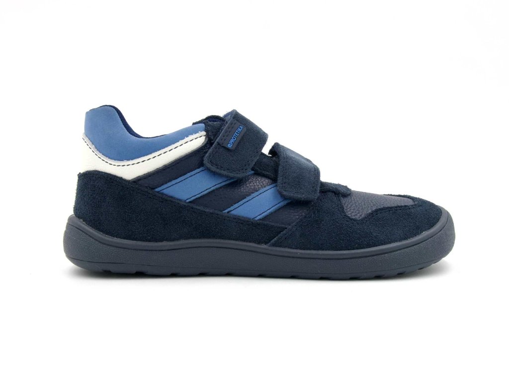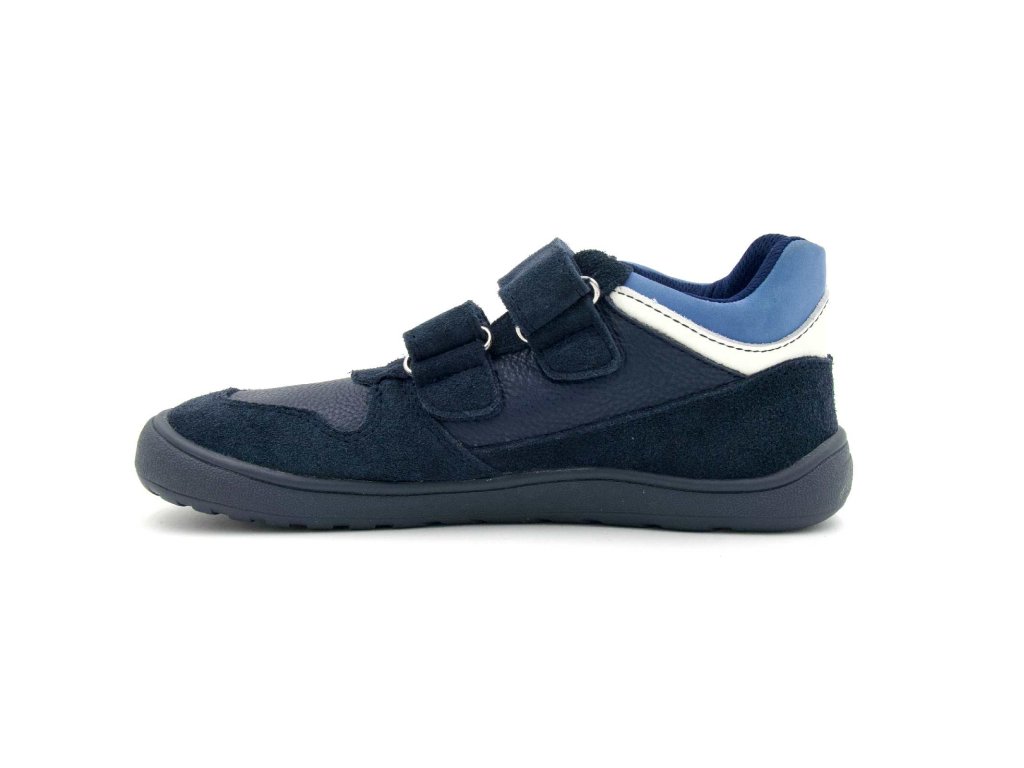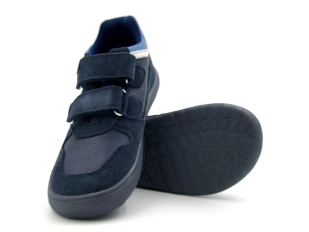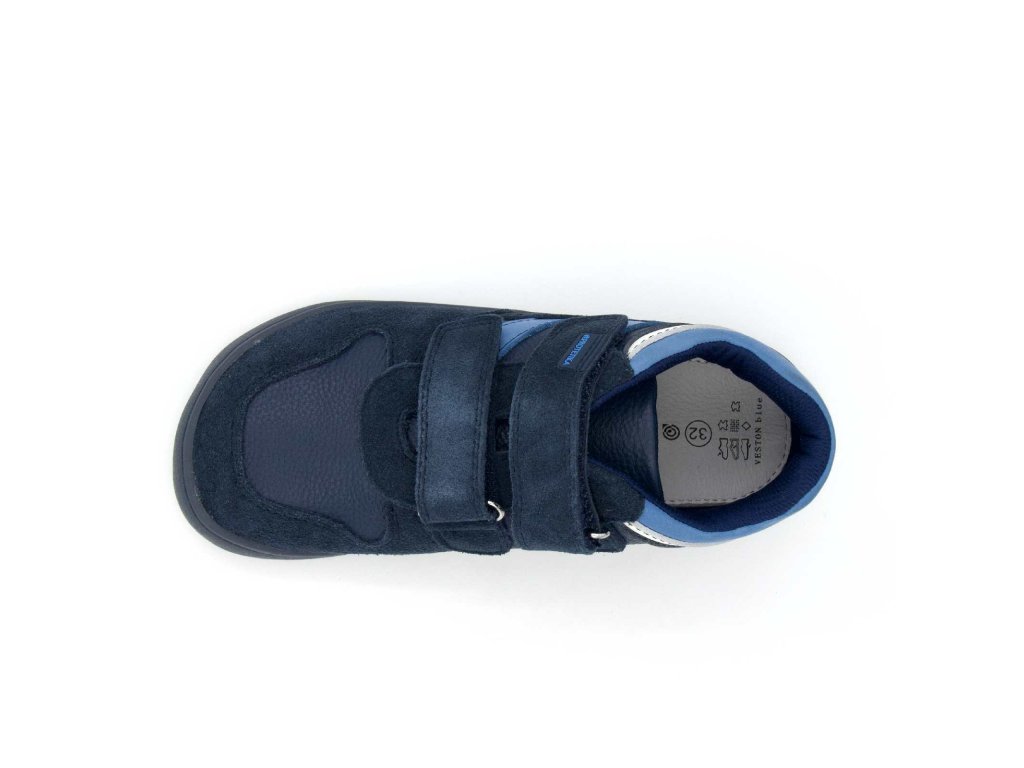 Dětské barefoot tenisky Veston Blue jsou lehké nízké celoroční boty navržené pro zdravý a přirozený vývoj dětského chodidla. Kombinace prémiové broušené a hladké přírodní kůže v modrém odstínu doplněná jemnými světle modrými pásky působí nadčasově a zároveň hravě. Mají částečně zpevněný opatek, který pomáhá udržet nohu ve správném postavení bez omezení pohybu.